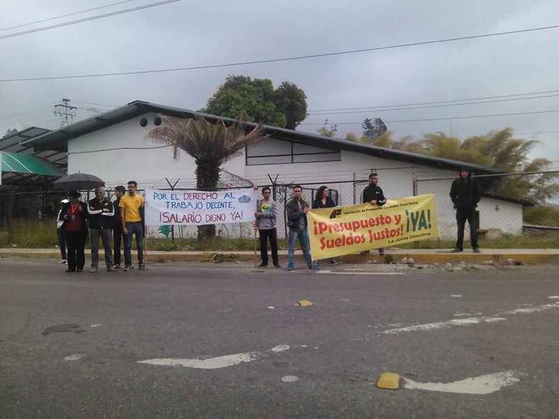 Un grupo de profesores, estudiantes y empleados manifestó pacíficamente en la puerta de la Sede de Sartenejas por el retraso en el pago de los sueldos, producido porque la USB no recibió del Ejecutivo Nacional los fondos necesarios para honrar el pago completo de la primera quincena de febrero.